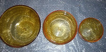 Inquiry regarding: Glass - Set of Three (3) Light Yellow & Brown Decorative Bowls